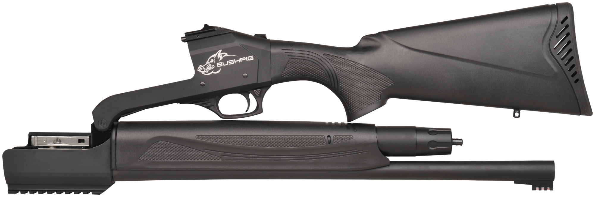 Unlike traditional shotguns of its class, the Bushpig has an action break ability, allowing the user to store the bushpig in tight spaces and transport the bushpig in a safe and compact manner.