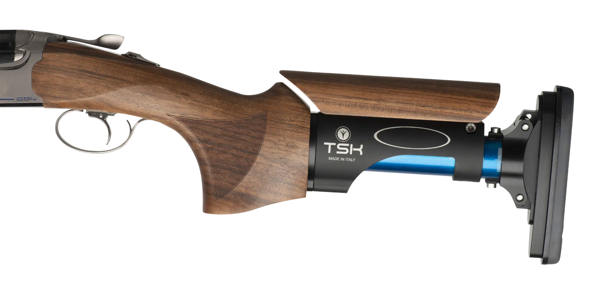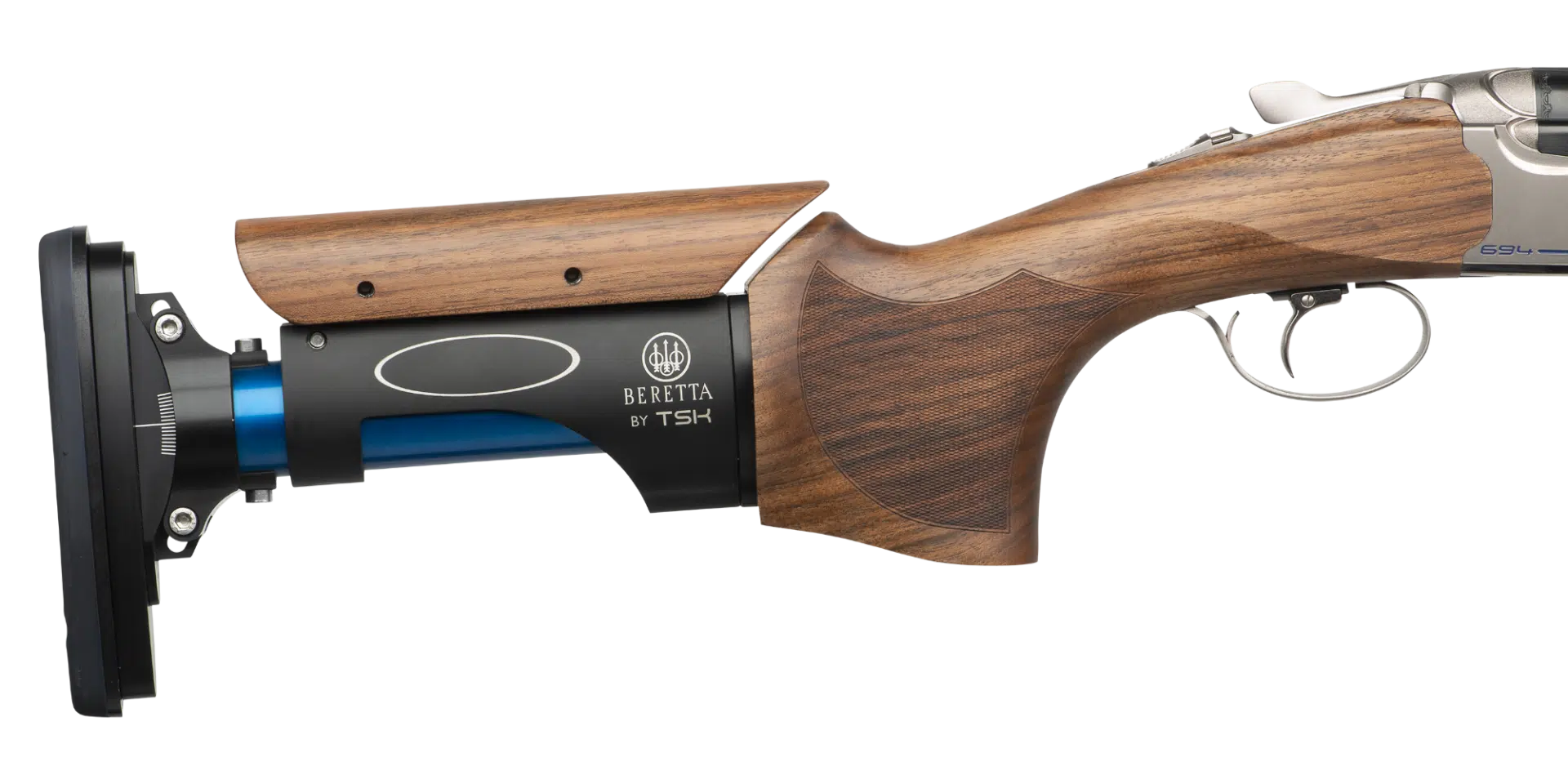 The winning edge Designed and tested in collaboration with the Beretta Shooting Team, 694 is the new over-and-under platform designed specifically for competition shooting, with a precise objective in mind: to help shooters increase their success rate. Thanks to a meticulous mechanical and ergonomic design process, the 694 represents a perfectly balanced over-and-under competition shotgun. Natural and immediate when shouldering, it features a precise swing and it’s easy to control. The new shape of the action and the stock provide increased field of vision, while the new forend iron system allows the user to maintain the opening load constant over time, and the Steelium Plus barrels guarantee a dense, uniform pattern every time. The slim, modern design lends the 694 a “racing” feel, for a bold, winning look.